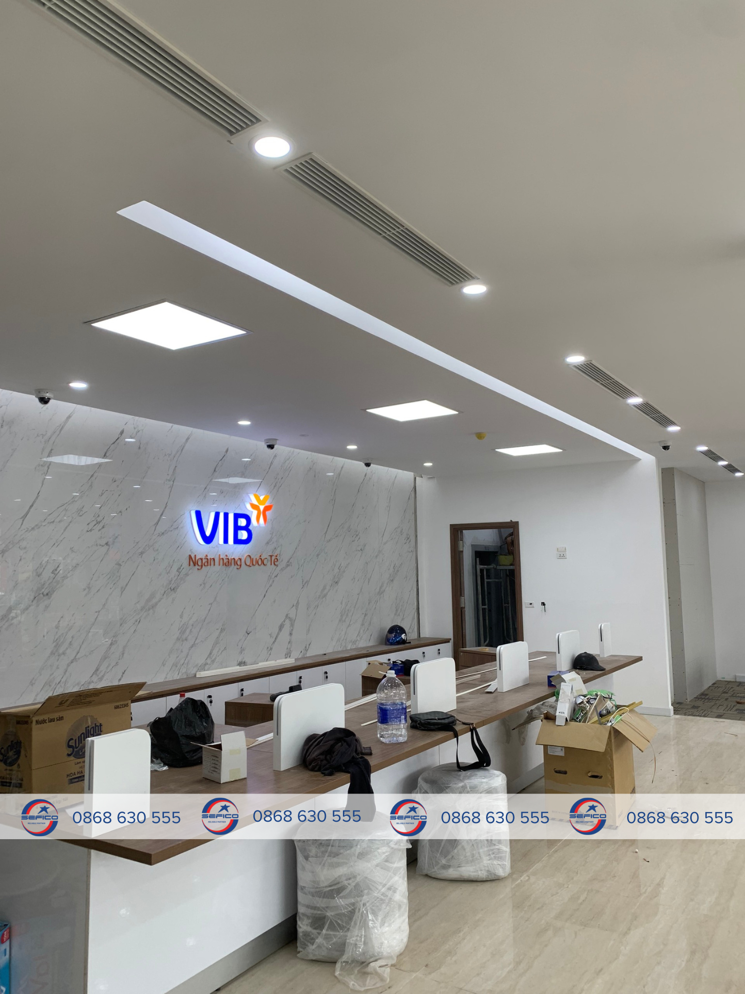 Với mong muốn mang đến không gian giao dịch hiện đại, sang trọng và thoáng mát, VIB Thái Nguyên đã lựa chọn Sefico là đơn vị thiết kế và thi công hệ thống điều hoà âm trần nối ống gió và điều hoà treo tường DAIKIN – một giải pháp tối ưu cho ngân hàng, văn phòng và các không gian làm việc chuyên nghiệp.