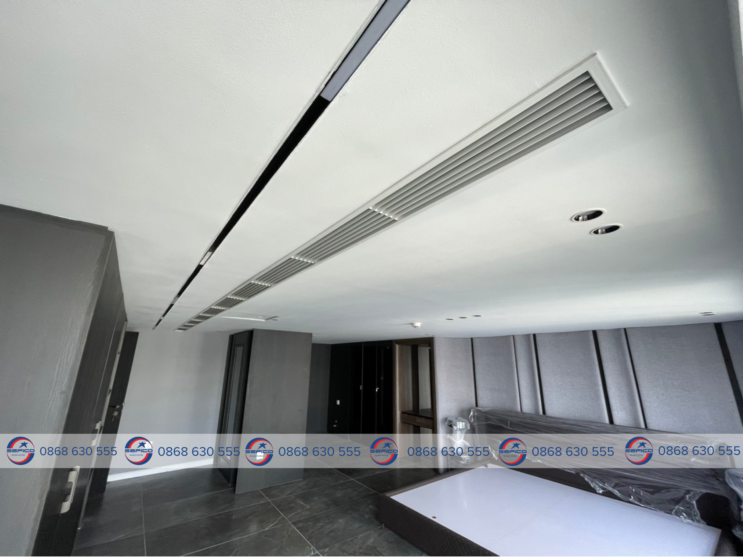 - Thiết kế tinh gọn – Tối ưu thẩm mỹ: Hệ thống được lắp âm trần, chỉ để lộ khe gió dài mảnh, giúp không gian trở nên tinh tế và hiện đại. Đây là lựa chọn hoàn hảo cho các căn hộ cao cấp có thiết kế nội thất đồng bộ.