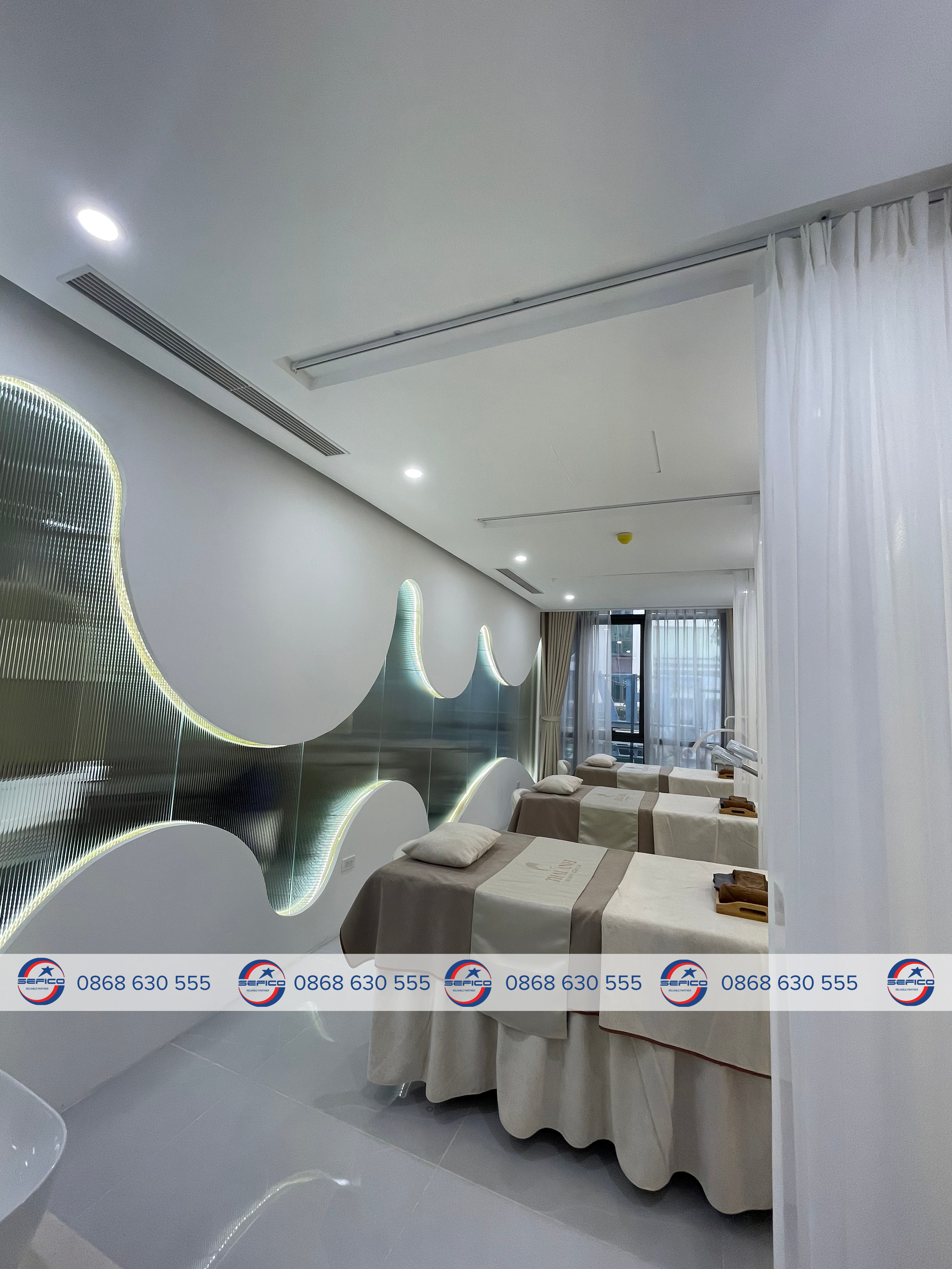 - Tầng 1 → Tầng 3: Khu Spa cao cấp, tập trung vào trải nghiệm khách hàng, cần độ yên tĩnh, thoải mái, và kiểm soát tốt độ ẩm – nhiệt độ.